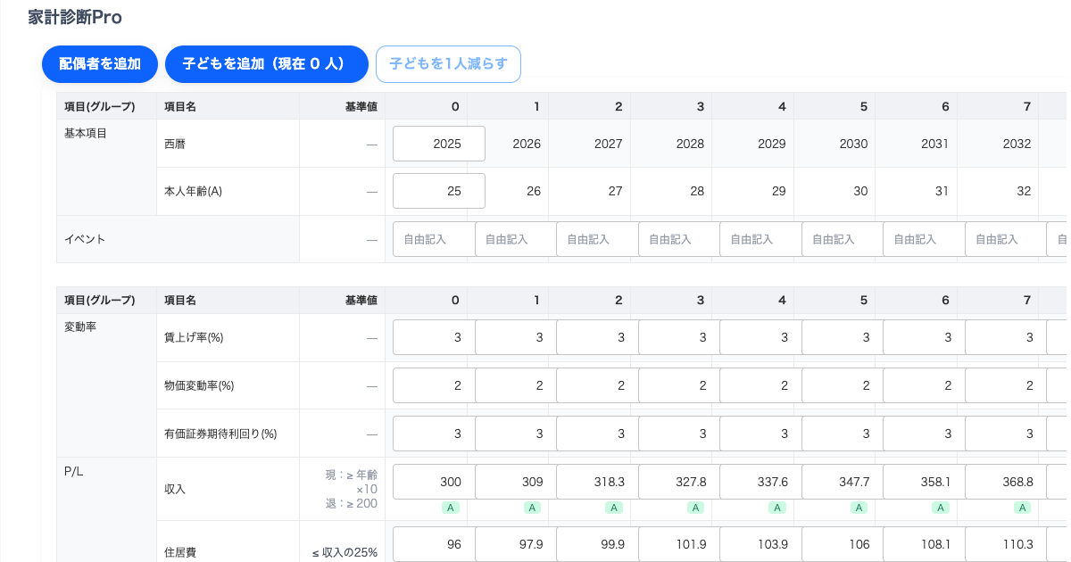 「家計の健康診断」は、収入・支出・将来イベントなどを入力すると、AIがA〜Cで総合評価。